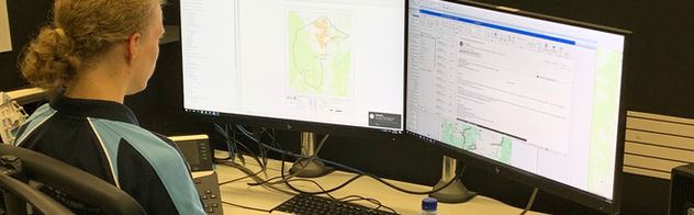 Temporary mapping office in the Keilor Police Station gym - Giovanna and Ludzia